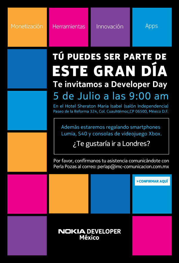Amigos que visitan este blog, los invito a el evento Nokia Developer Day que se llevará a cabo el 5 de julio a partir de las 9 hrs.